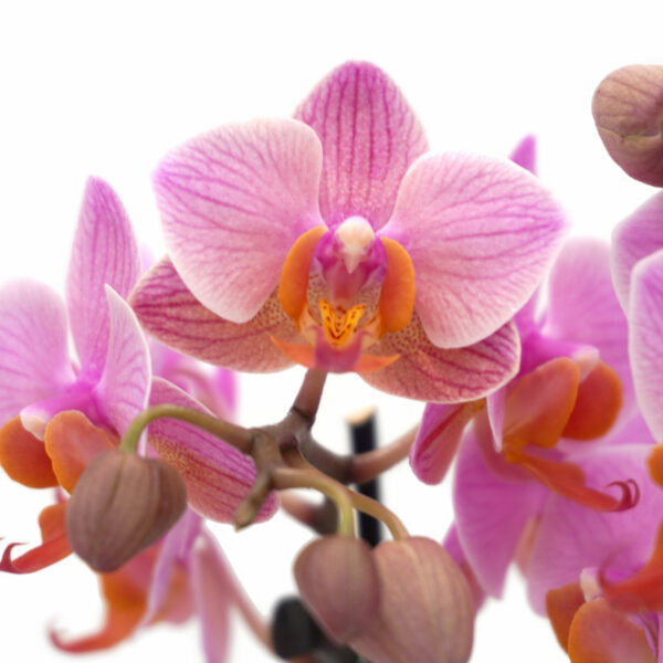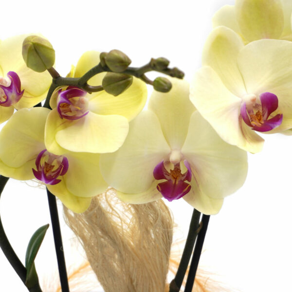 Phalaenopsispflanze (Orchidee) mit Manschette und Dekoration