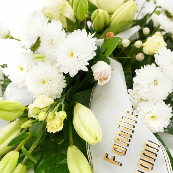 Trauergesteck / Trauerkissen mit Druckschleife